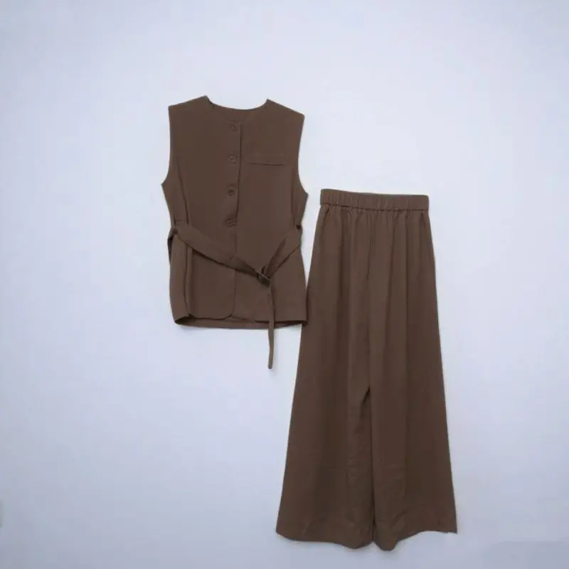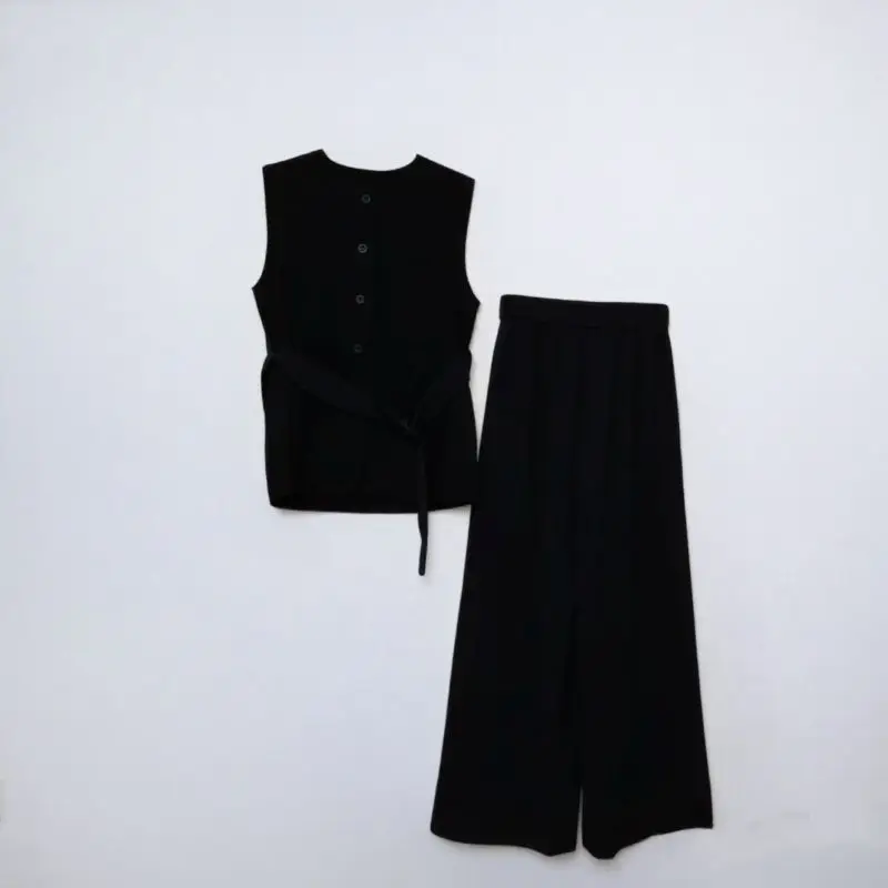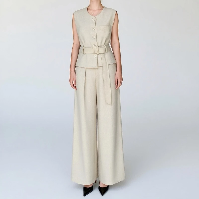 Sleeveless Suit Jacket Paired with Wide-leg Pants - a Fashionable and Casual Outfit Suitable for Workdays, Leading the New Trend